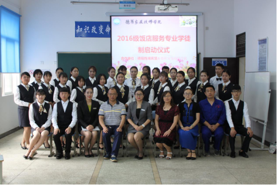 德阳安装技师365bet即时比分_365提供参考号BAVF_beat365体育亚洲与德阳旌湖国际酒店联袂携手,合力启动饭店服务专业新型学徒制教学实践探索。旌湖国际酒店人事质检培训部经理何慧清女士、365bet即时比分_365提供参考号BAVF_beat365体育亚洲教务处相关负责人出席启动仪式。