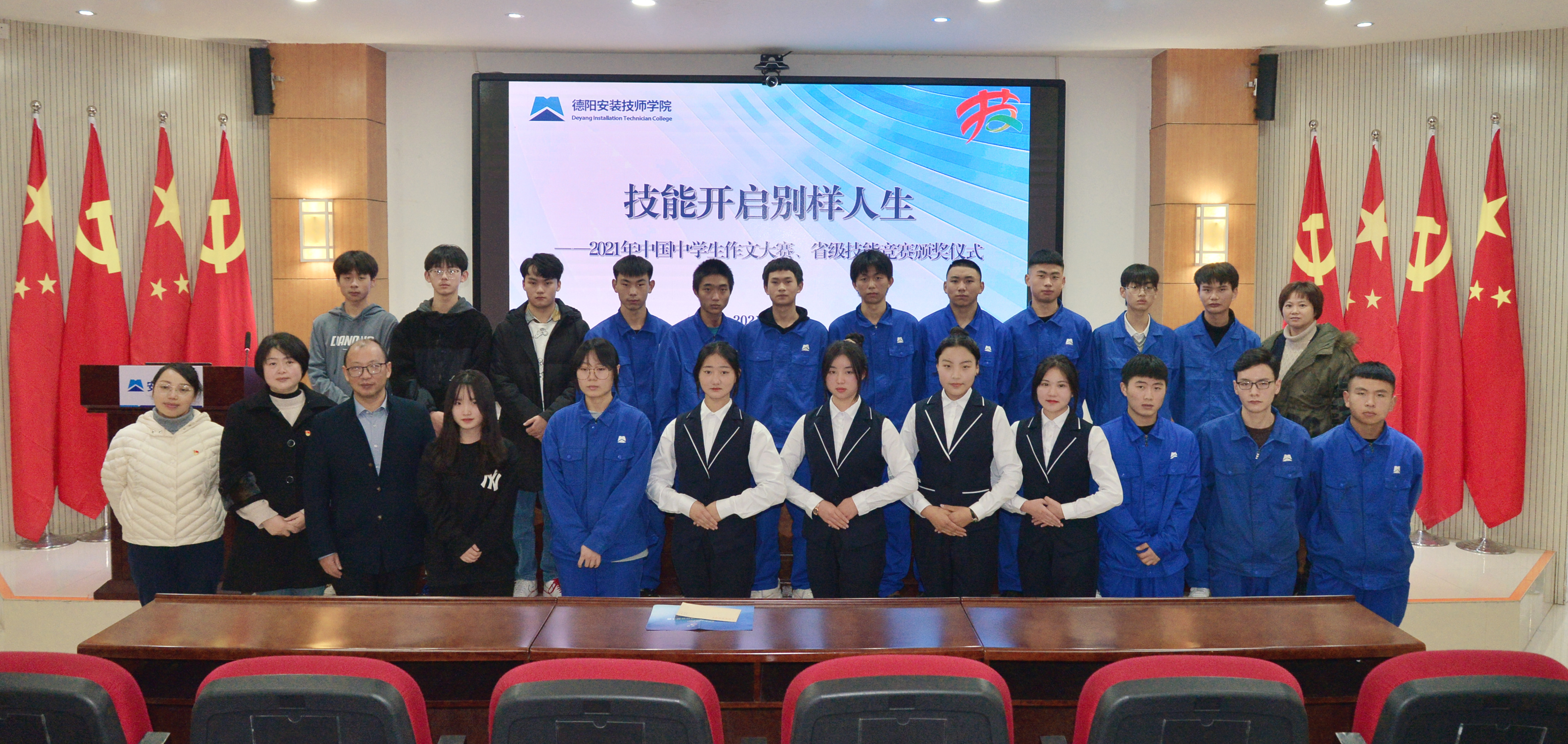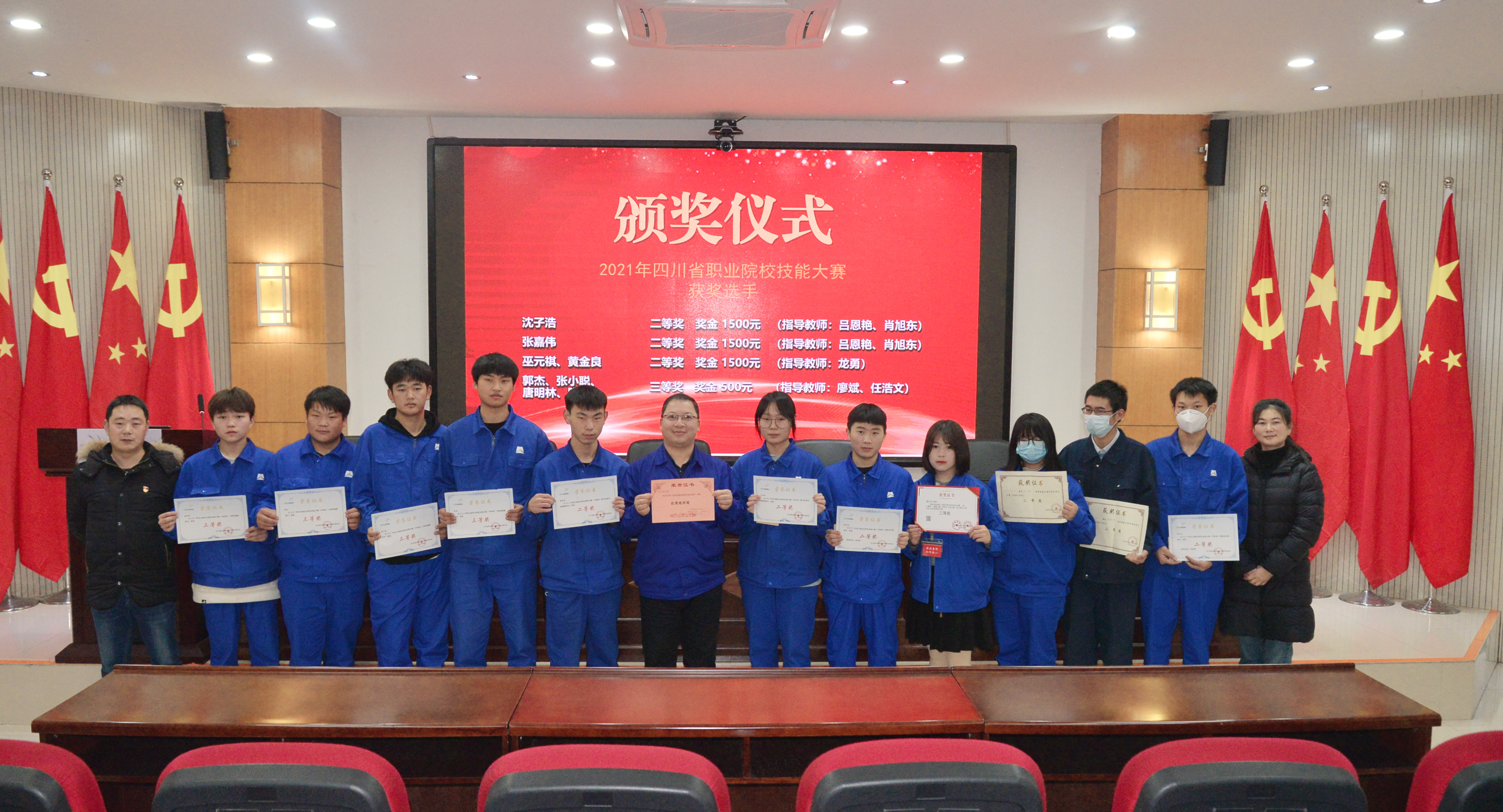 颁奖仪式以世界技能大赛的“‘未’你而来——技能成就梦想之路”,第一届全国技能大赛的“比拼”两个记录片为开篇,给现场师生生动地展示了技能赛场内外的汗水、坚持、努力和成功。希望同学们在感受技能盛宴氛围的同时,以“传承、坚持、团队、突破、未来”的工匠精神作为自己学习的动力和行动源泉。据了解,本次颁奖项目分别为:“中国中学生作文大赛(2020-2021)”二等奖2名,“第十六届中国中学生作文大赛(四川赛区)”二等奖1名;四川省职业院校技能大赛“焊接技术”项目二等奖2名,“电气安装与维修”项目二等奖2名,“工程测量”项目三等奖4名。据悉,目前技能竞赛已经形成校、市、省、国家、世界级赛事闭环,而第一届全国职业技能大赛的成功举办,更是营造出了“劳动光荣、技能宝贵、创造伟大”的良好社会风气。同学们纷纷表示,作为技师365bet即时比分_365提供参考号BAVF_beat365体育亚洲的学生,已充分认识到学技能是一定有前途、有价值的。将会学好技能,开启别样人生!